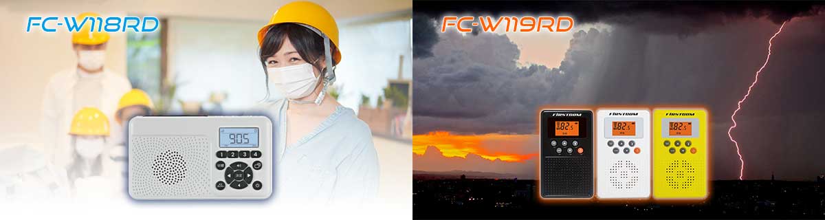 2024/11/20ワイドFM対応、非常時に備える日本製の防災ラジオ・[ FC-W119RD ]の商品ページを公開しました。 電源が入っていない時でも防災同報無線(アナログ)、緊急地震速報・緊急津波速報等を監視し、受信します。
