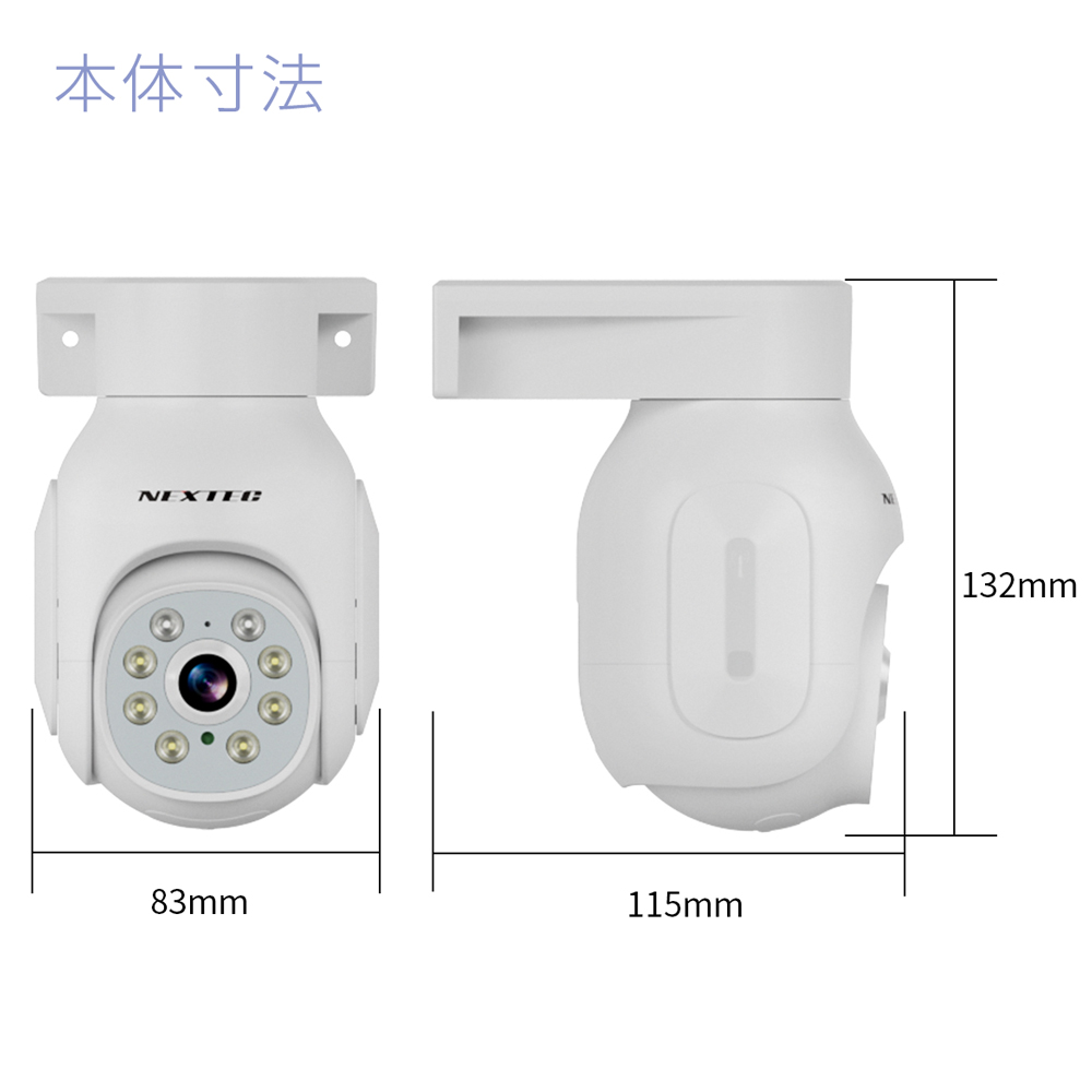 クリックすると拡大しますフレームレート 15fps 最低被写体照度 カラー: 0.1 Lux / 白黒: 0.01 Lux フリッカー機能 50HZ / 60HZ 音声 録音・双方向会話可能 ネットワーク Wi-Fiの [ 2.4GHz / 5GHz ] 帯に対応 対応アプリ ESeecloud [ iOS / Android ] 動作温度 -10°~ +60° 外形寸法 奥行約115mm × 高さ約132mm × 横幅約83mm