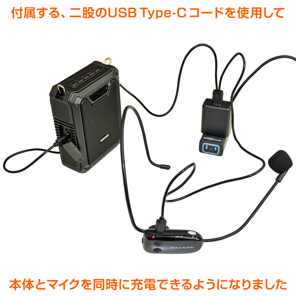 ●マイクロSDカード、USBメモリ、外部機器からの音声や音楽再生中でも、マイク音声の拡声器として使用できます。(マイク音声個別の音量調整はできません)。また、本体は充電中も操作が可能です。