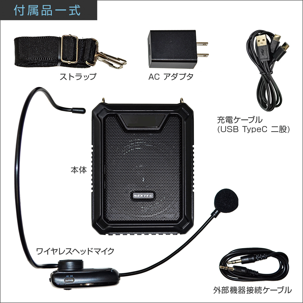 または、腰や肩に下げて持ち歩きながらの使用もできる小型拡声器です。